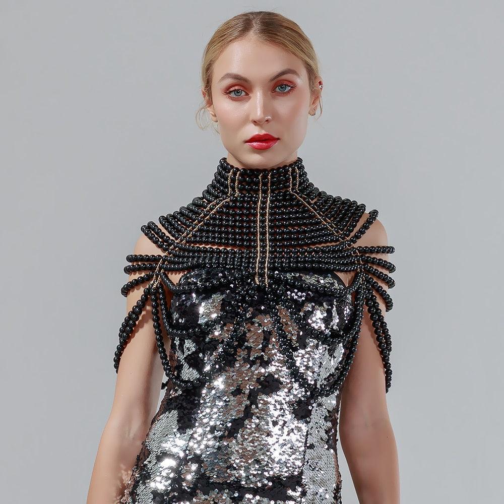 Introducing our brand new high-quality pearl and alloy body chain, designed for the modern woman who wants to look stunning and elegant. Our unique body chain is compatible with a wide range of outfits, including dresses, tops, and shorts, making it perfect for any occasion, whether it's a party, wedding, prom, birthday, or even cosplay.